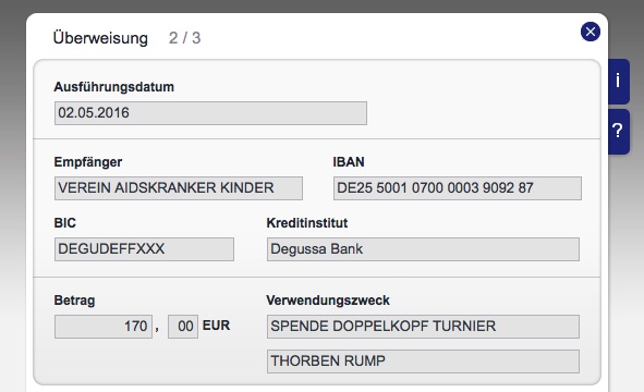 Über die Startgebühren, Spenden und die Verkaufserlöse sind 170€ Gewinn zusammengekommen, die zu 100% an den „Verein zur Unterstützung AIDS-kranker Kinder e.V.“ gehen.